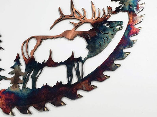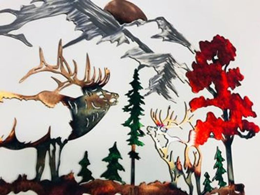 Elk and Mountain Metal Wall Art - Nature Décor - Elk Metal Wall Art - Mountain Metal Art - Hunting Décor - Gift for Hunter