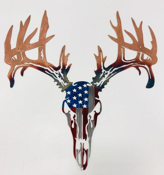 Deer Head American Flag Metal Wall Art - Gift for Hunter - America Flag Deer Metal Art - Hunting Décor - Hunting Art